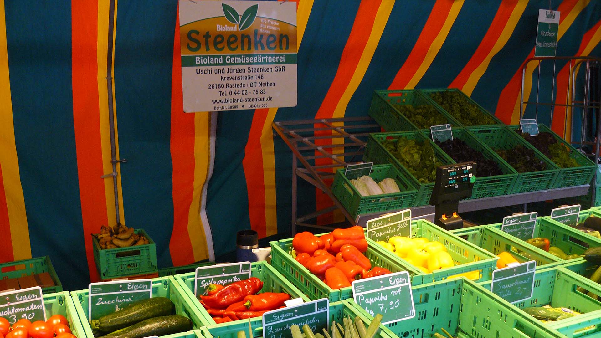 Seit mehr als 25 Jahren bieten wir unseren Kunden frisches Obst und Gemüse aus ökologischem Anbau auf dem Rasteder Wochenmarkt an.